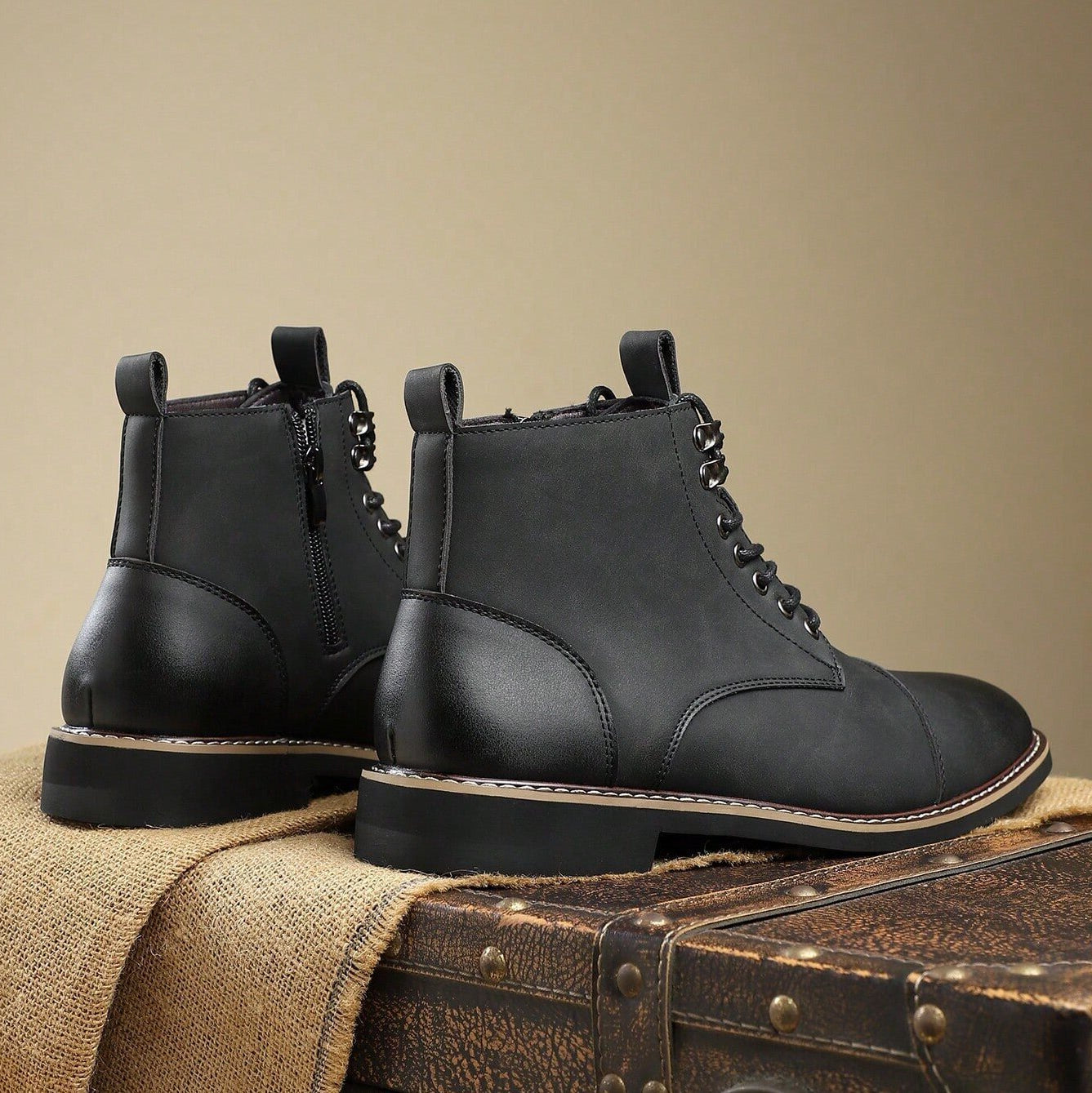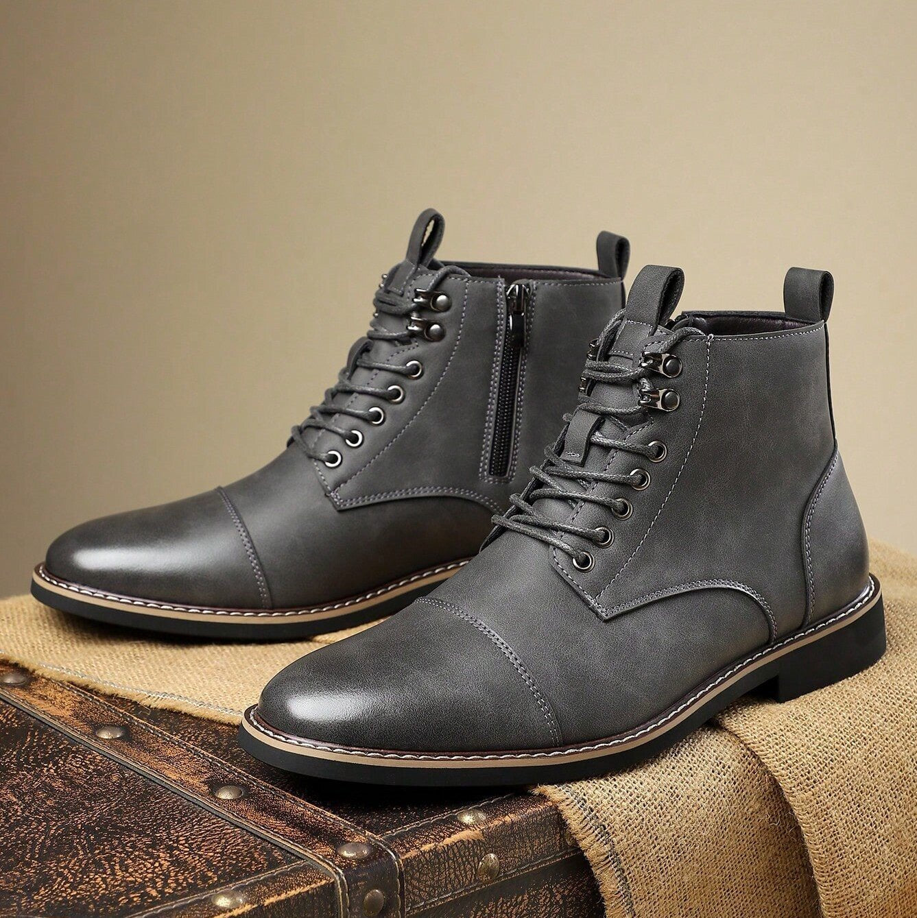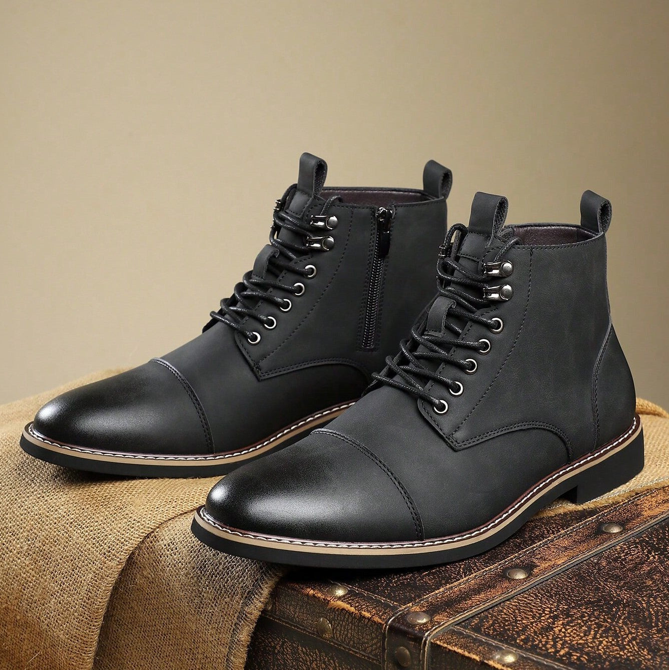 A gentleman’s character is found in the quiet details—and it shows in matte-finish leather and the polished cap-toes. Defined by clean stitching, a structured lace-up front, and a subtle side zipper, these ankle boots carry the spirit of time-honored craftsmanship into everyday wear.