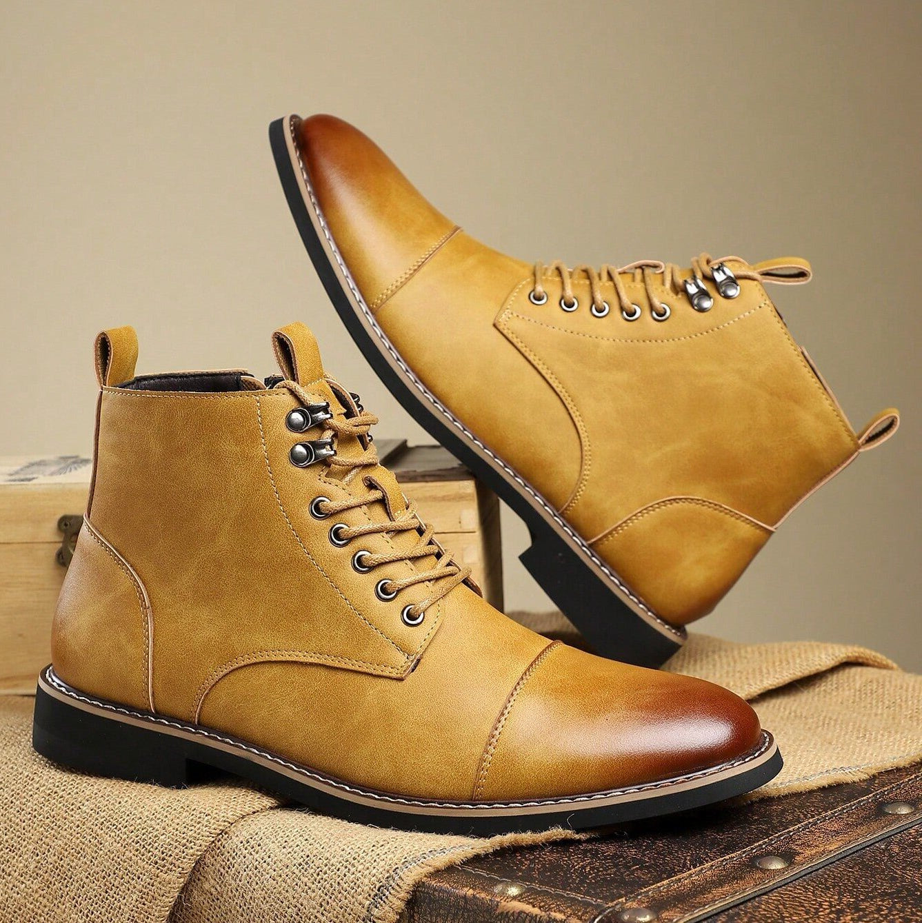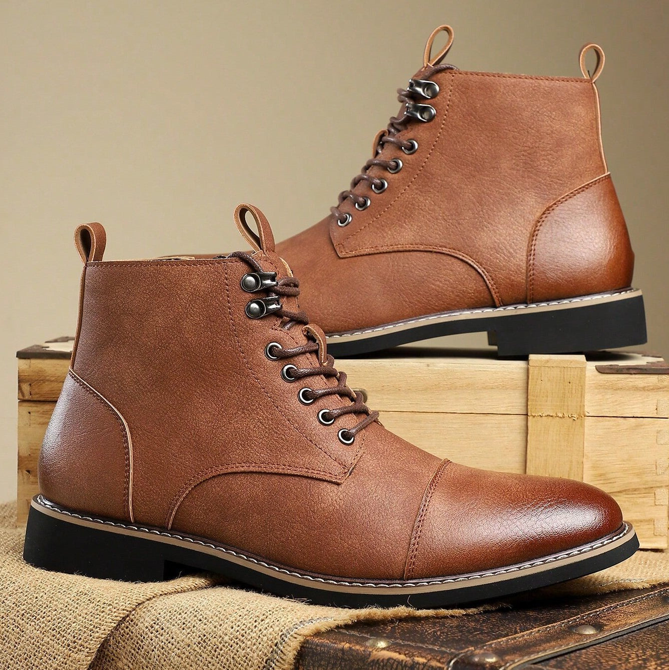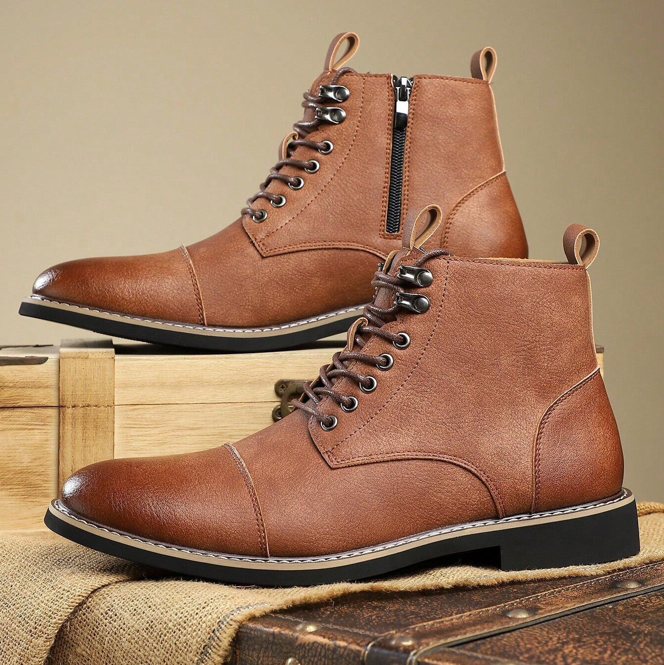 A gentleman’s character is found in the quiet details—and it shows in matte-finish leather and the polished cap-toes. Defined by clean stitching, a structured lace-up front, and a subtle side zipper, these ankle boots carry the spirit of time-honored craftsmanship into everyday wear.