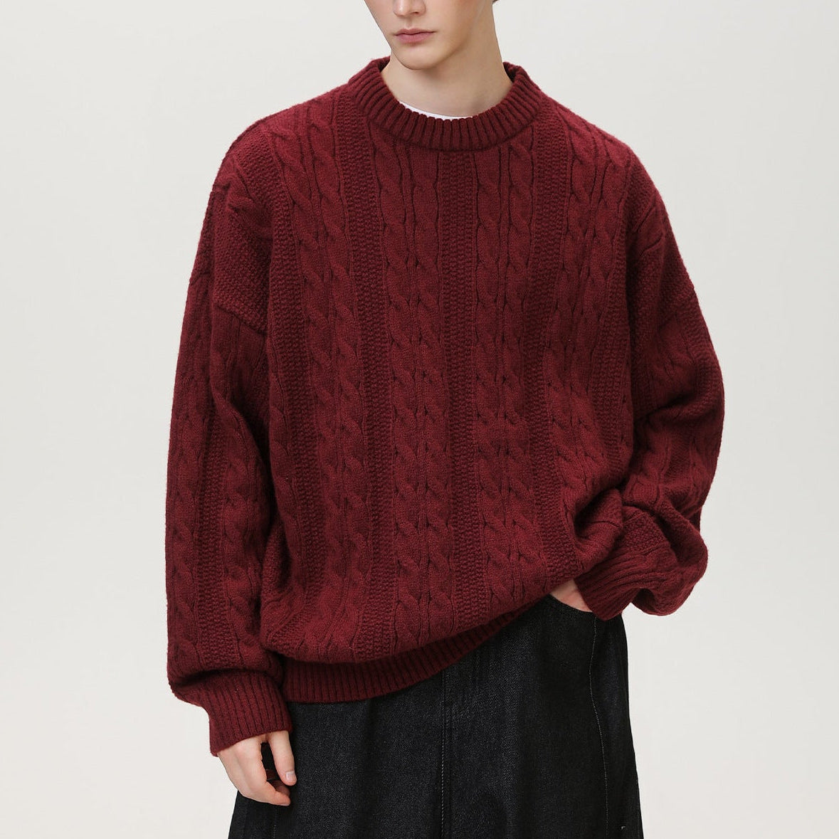 Crafted in a richly textured cable knit, this sweater captures the quiet charm of retro winter. Designed in a relaxed, oversized fit with lasting warmth, it’s built for long winters and unhurried mornings — steady, grounded, and naturally refined.