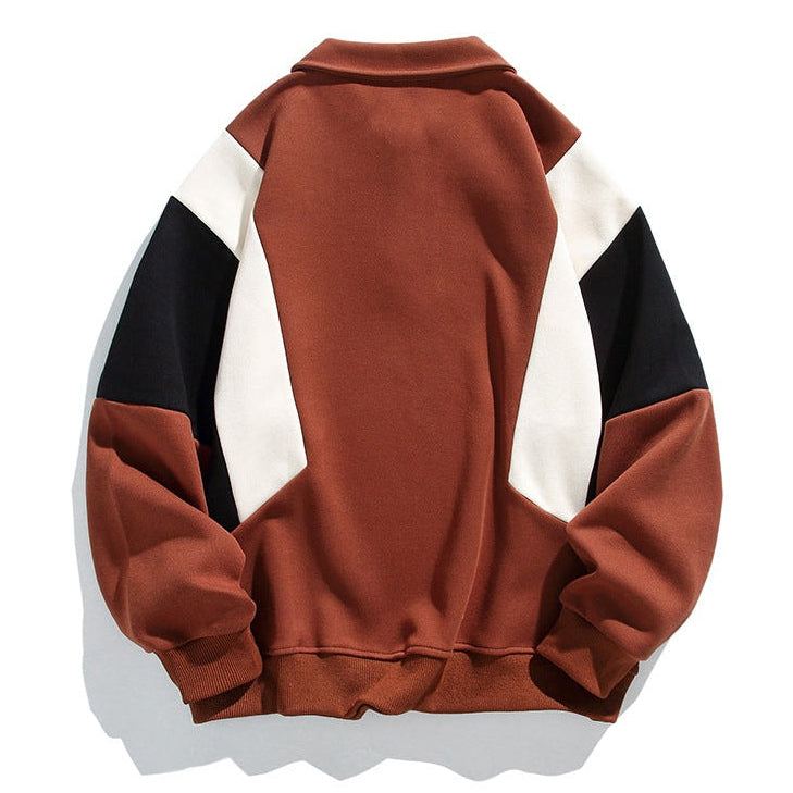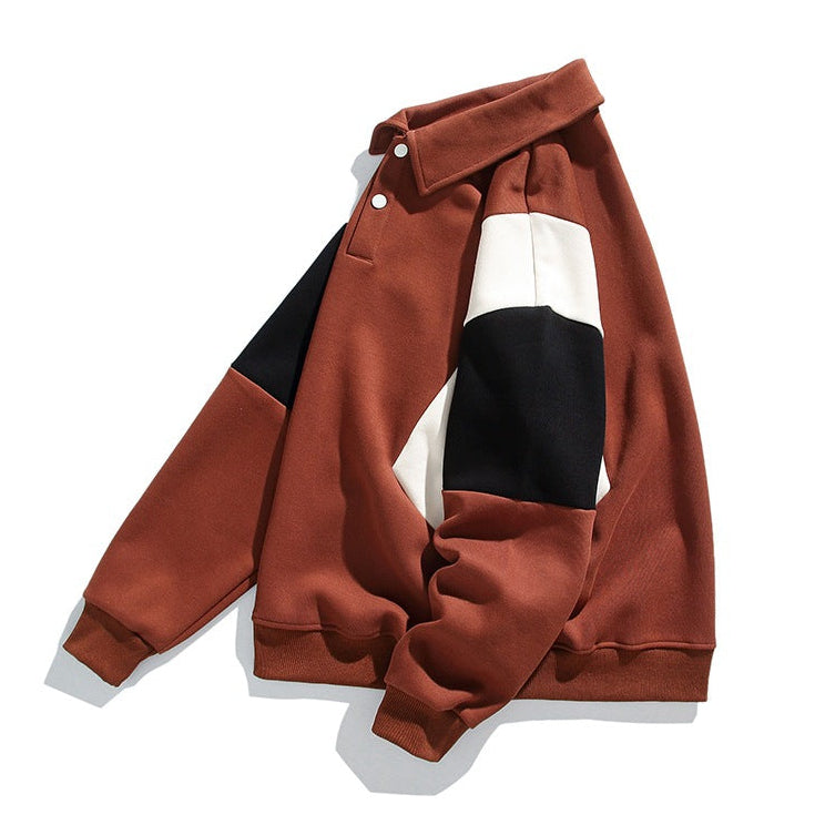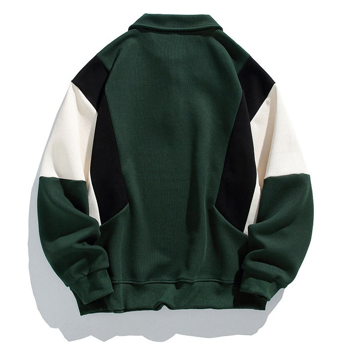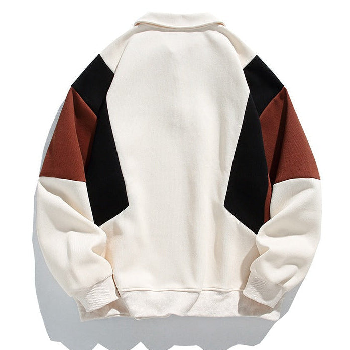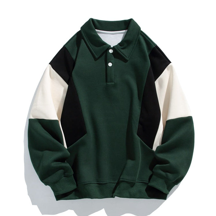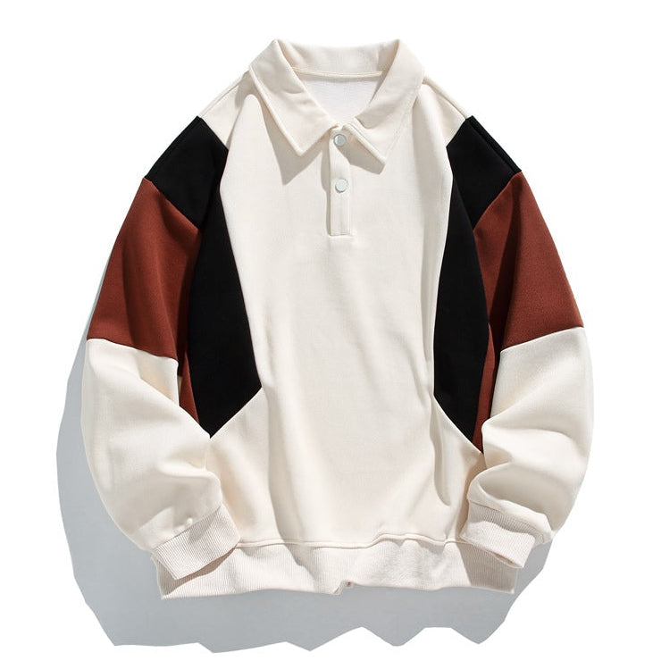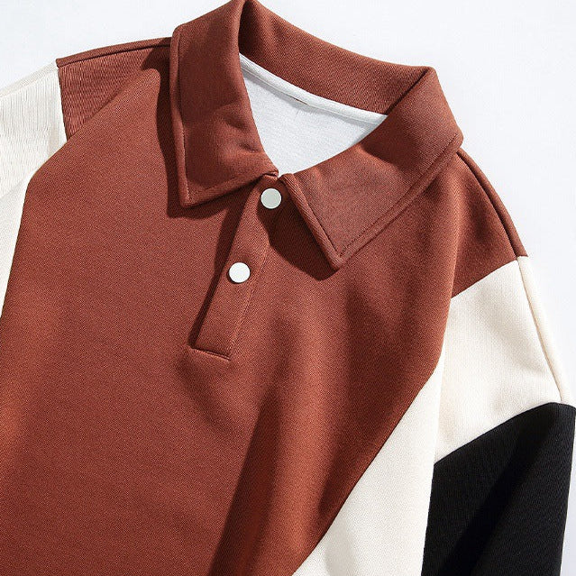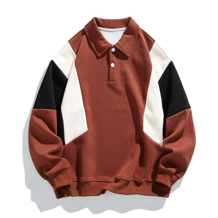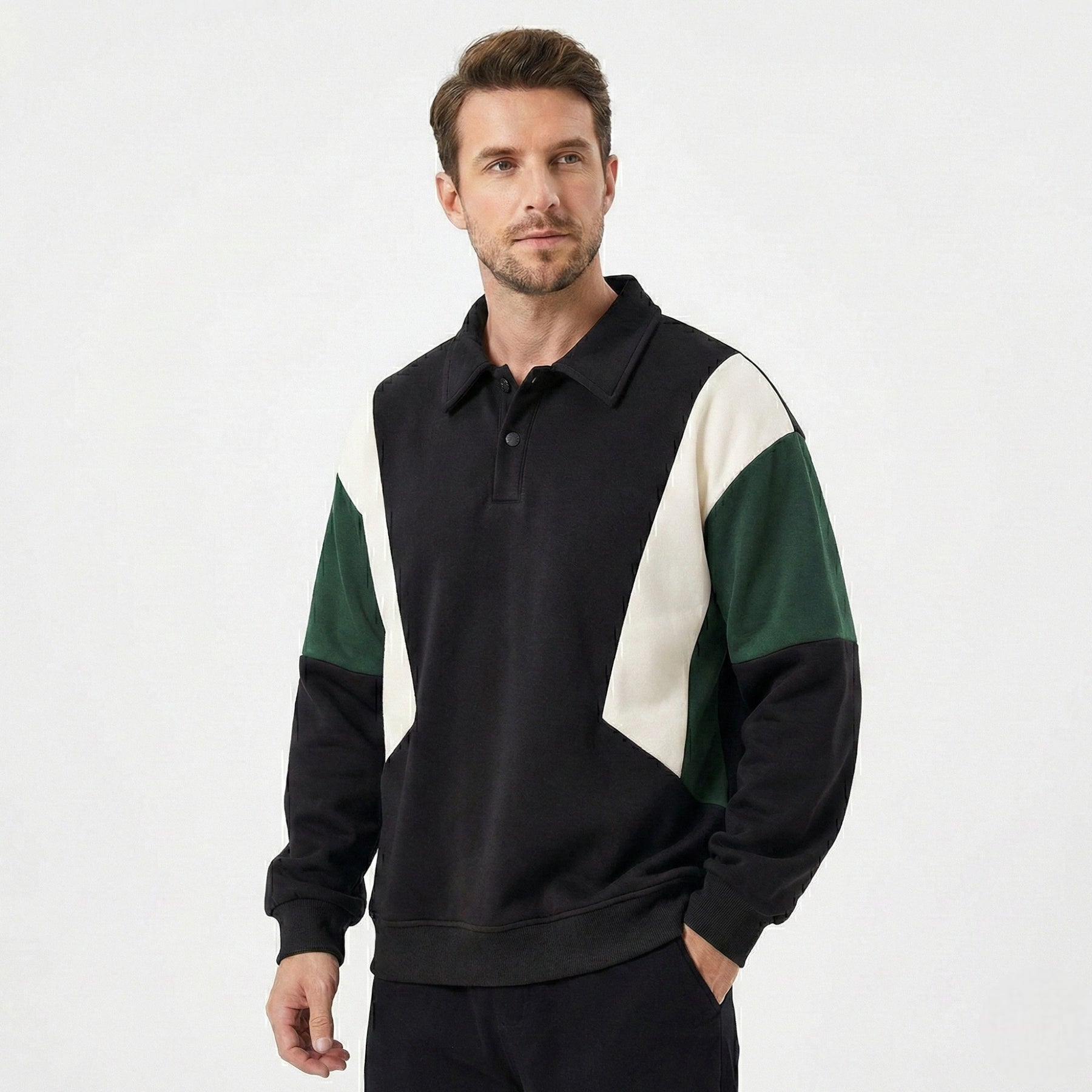 Crafted from a soft cotton blend, this color-blocked polo sweatshirt adds a vintage athletic edge to everyday wear. The collared neckline and half-button placket echo classic rugby style, while bold contrast panels create a sharp, graphic finish built for cool mornings and weekend drives.